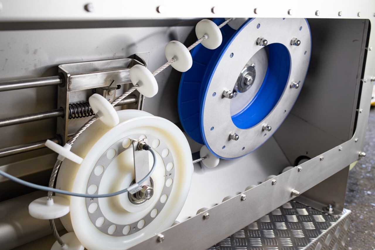 Mit dem patentierten 2K-System haben wir die Antriebs- und Umlenktechnik konsequent weiterentwickelt. Edelstahl-Polyurethan-Kombinationen sorgen für eine verschleißarme, geräuscharme und korrosionsbeständige Kraftübertragung – und erhöhen damit die Lebensdauer der gesamten Anlage spürbar.