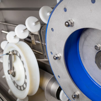 Ein Edelstahl-/Polyurethan-Friktionsrad und ein ebenso aufgebautes 2K-Umlenkrad sorgen für verschleißarme, korrosionsbeständige und geräuscharme Kraftübertragung. Zusätzlich sorgen gebogene Speichen im Umlenkrad für einen verbesserten Produktfluss und ermöglichen eine flexiblere Streckenführung.