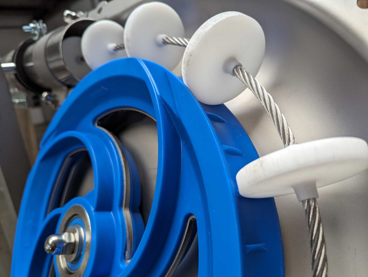 Die Ausführung ist lebensmitteltauglich und auf hygienisches Design ausgelegt. Reinigungs- und Trocknungselemente lassen sich in den Seilkreislauf integrieren und säubern die Rohrleitung schnell und gründlich. Das verkürzt Stillstandszeiten, ermöglicht rasche Produktwechsel und sorgt für stabile, sichere Prozesse im Dauerbetrieb.
